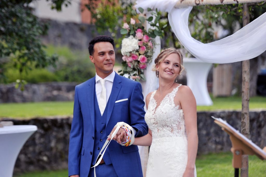 Maybe you guessed it, but for sure, one of my favorite symbolic gesture is… the handfasting. I just love practicing it in my ceremonies. There is magic in it… And, living in France, I got used to make it in very different ways… From the original one to the « bond hands » as we call it in french.