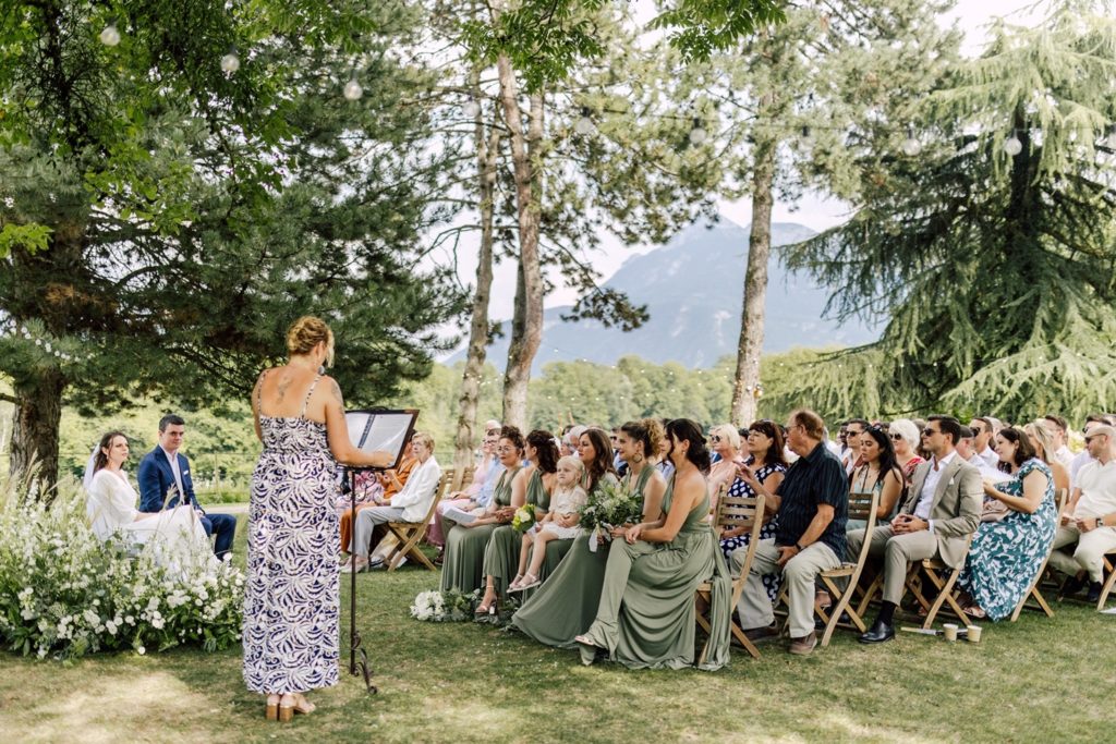Le jour J, je prends le temps d’arriver au moins 2h30 avant vous, pour m’imprégner pleinement du lieu, de l’atmosphère et de votre décoration. C’est un moment clé pour peaufiner les derniers détails, s’assurer que tout le matériel nécessaire est présent, finir de me coordonner avec les autres prestataires, et permettre à vos proches de mettre un visage sur votre officiante.